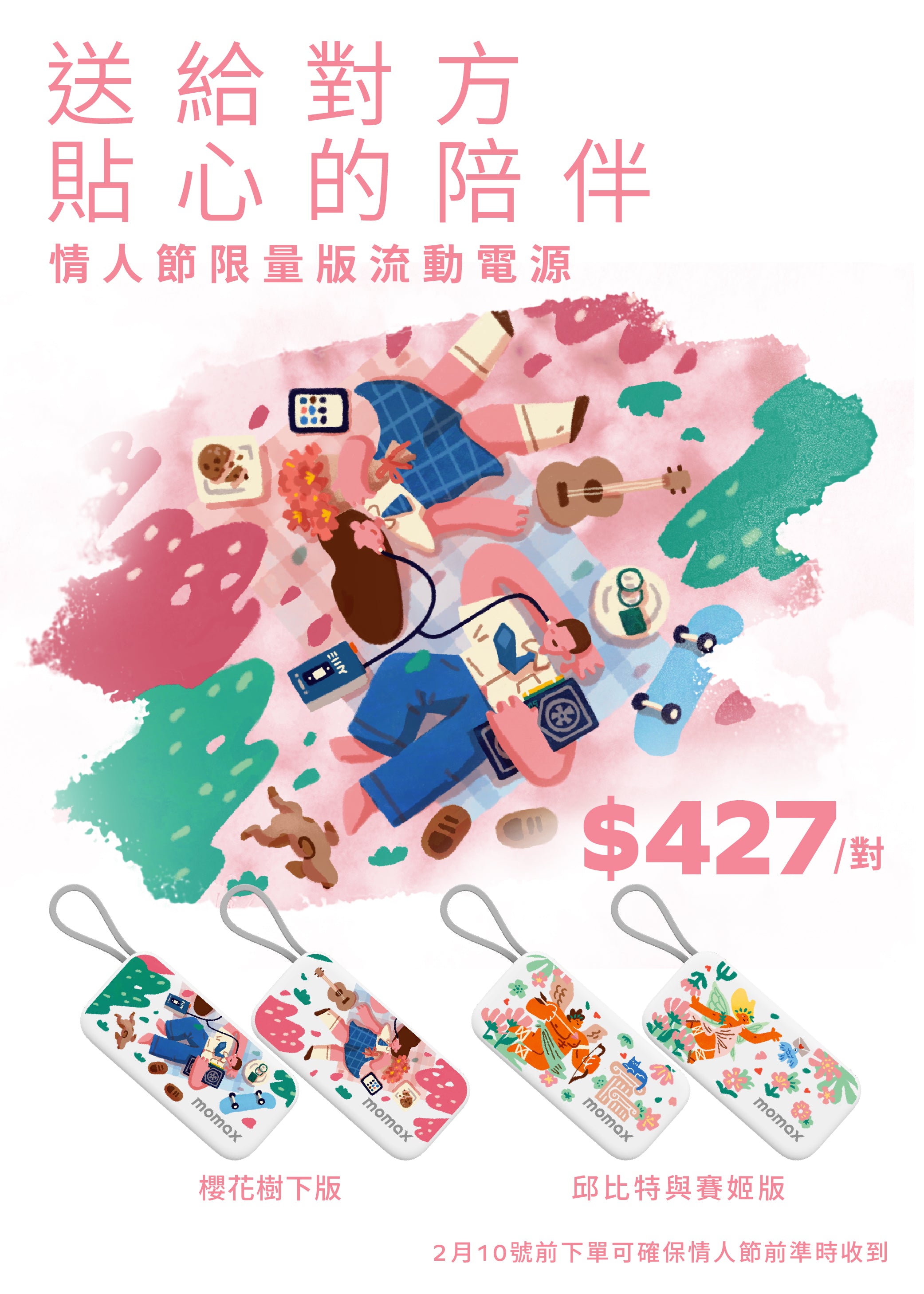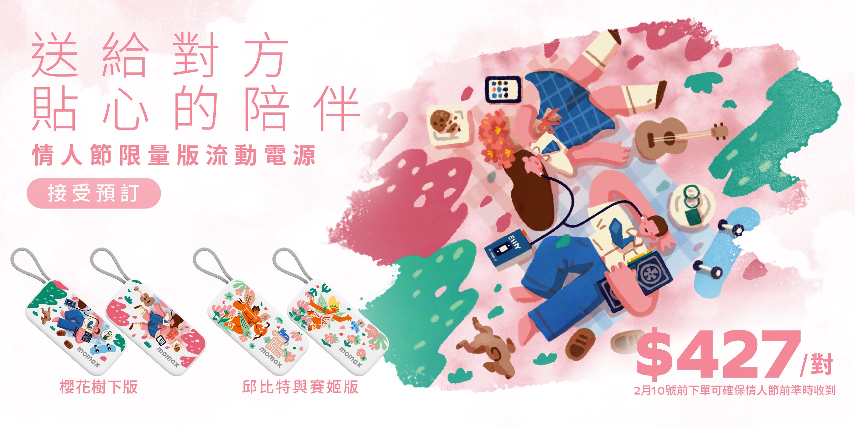 1-Power Mini 5000mAh 内置可折叠USB-C移動電源 (情人節限量 - 櫻花樹下版)