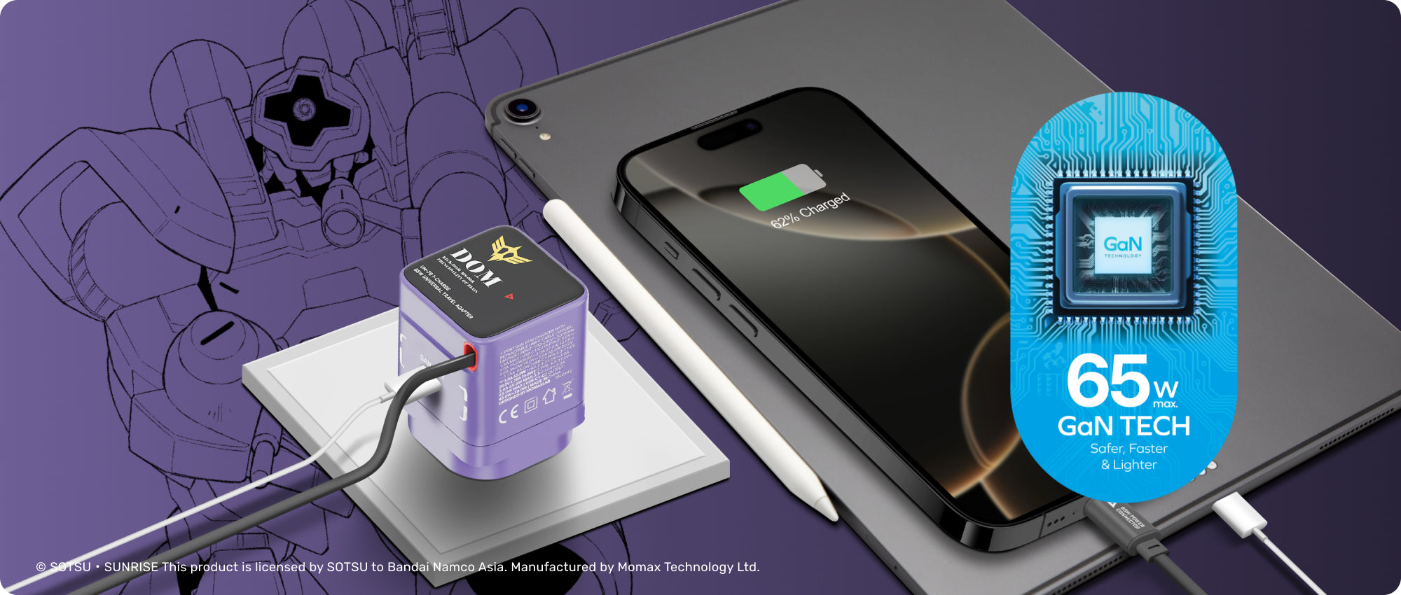 Introducing Momax 1-CHARGE+ — a single-port 65W GaN charger that perfectly combines power and portability. Whether charging your iPhone, Android, iPad, Switch or MacBook Air, this charger is your best solution for staying connected.