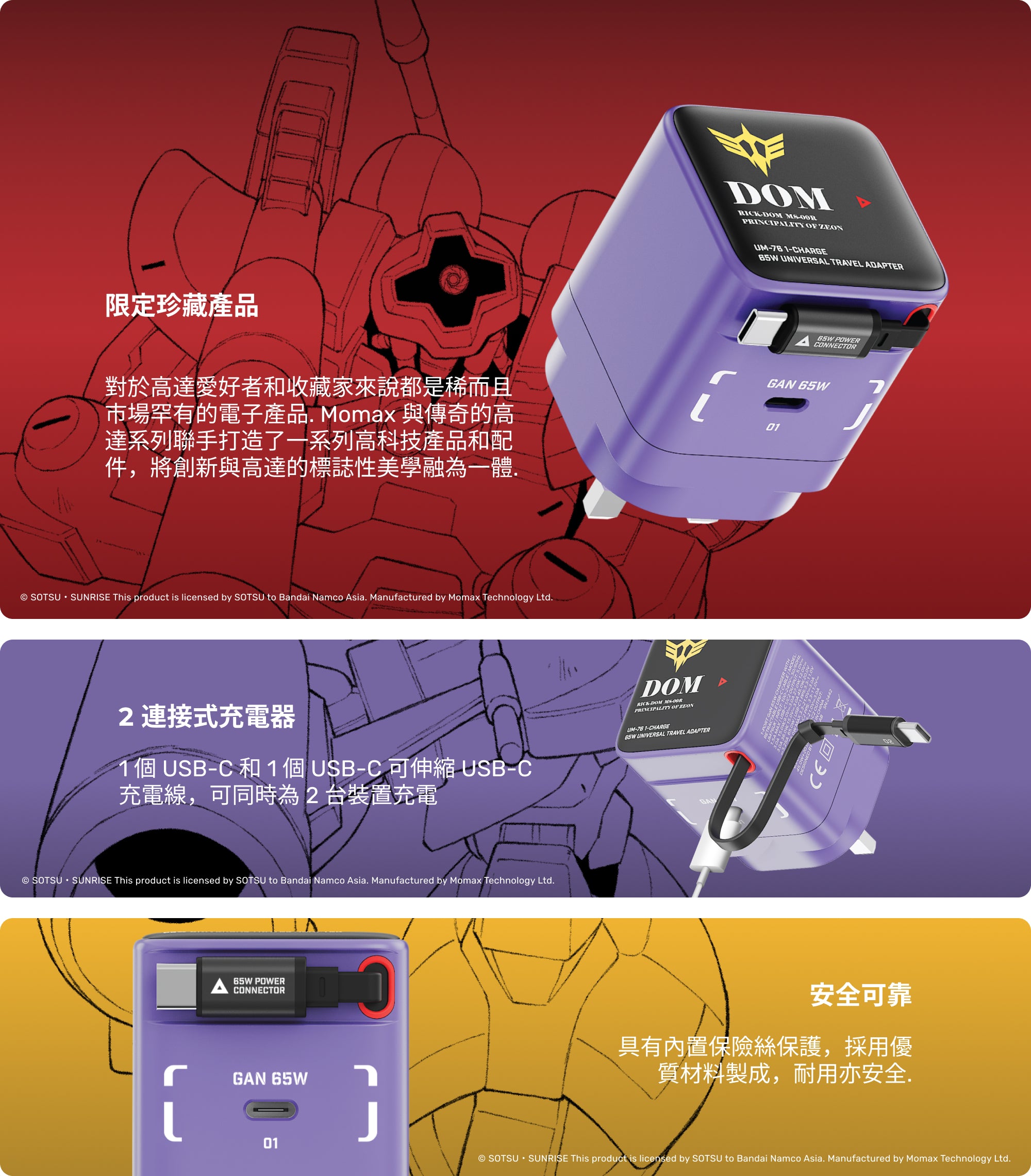 輕巧的設計卻不影響功能. 告別笨重的充電器,迎接我們以高達為靈感的便攜式解決方案,無論您身在何處,都能為你的電子產品快速可靠地充電