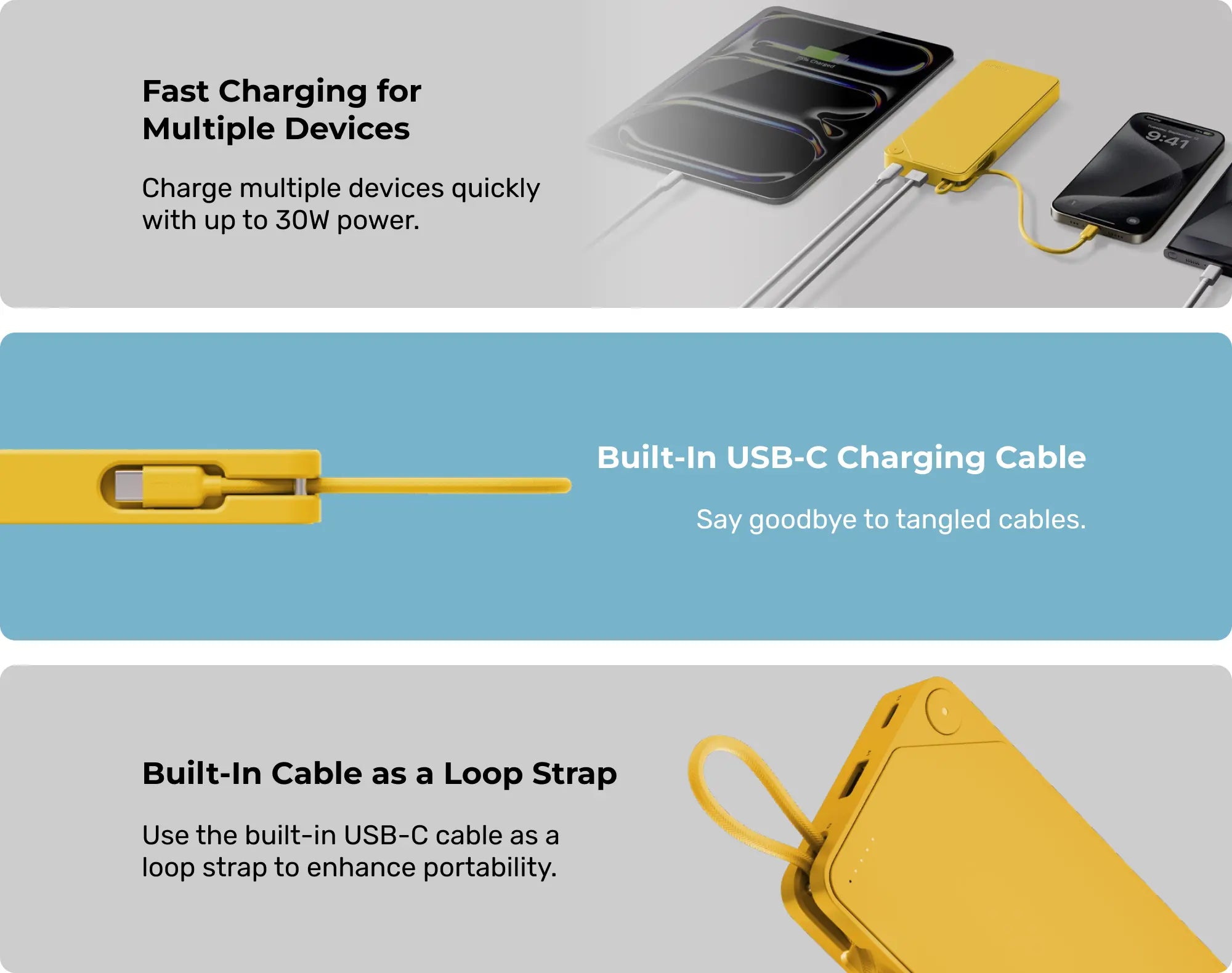 1-Power X Power Bank 20000mAh With Built-In USB-C Cable