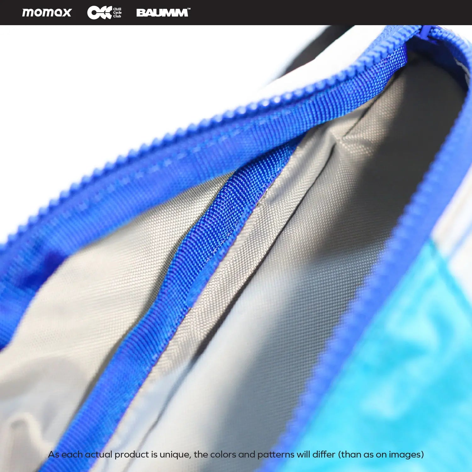 • Sustainable Material Innovation: The advanced composition features re-cycled paraglider textiles paired with acetate hardware for sophisticated, environmentally friendly functionality. This combination ensures high performance on-the-go while prioritizing non-toxic and salvaged components.