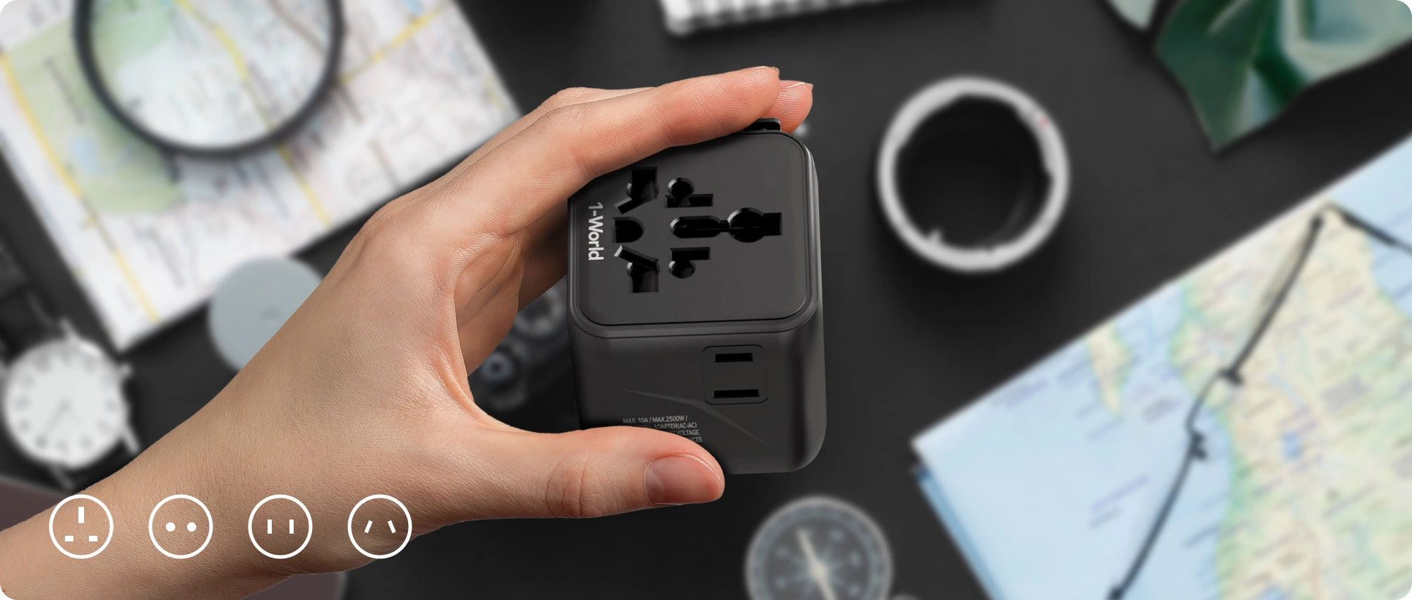 - 1-World Universal Travel Adapter