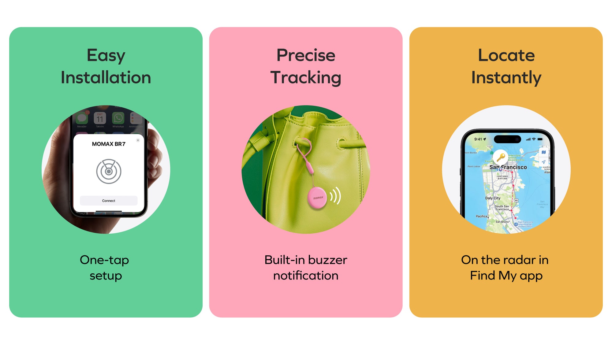 Never lose your valuables again. With features like privacy protection, accurate tracking with a two-way alarm system, and long battery life, the Momax Pinpop Find My Locator Tracker provides peace of mind and convenience for keeping track of your personal belongings.