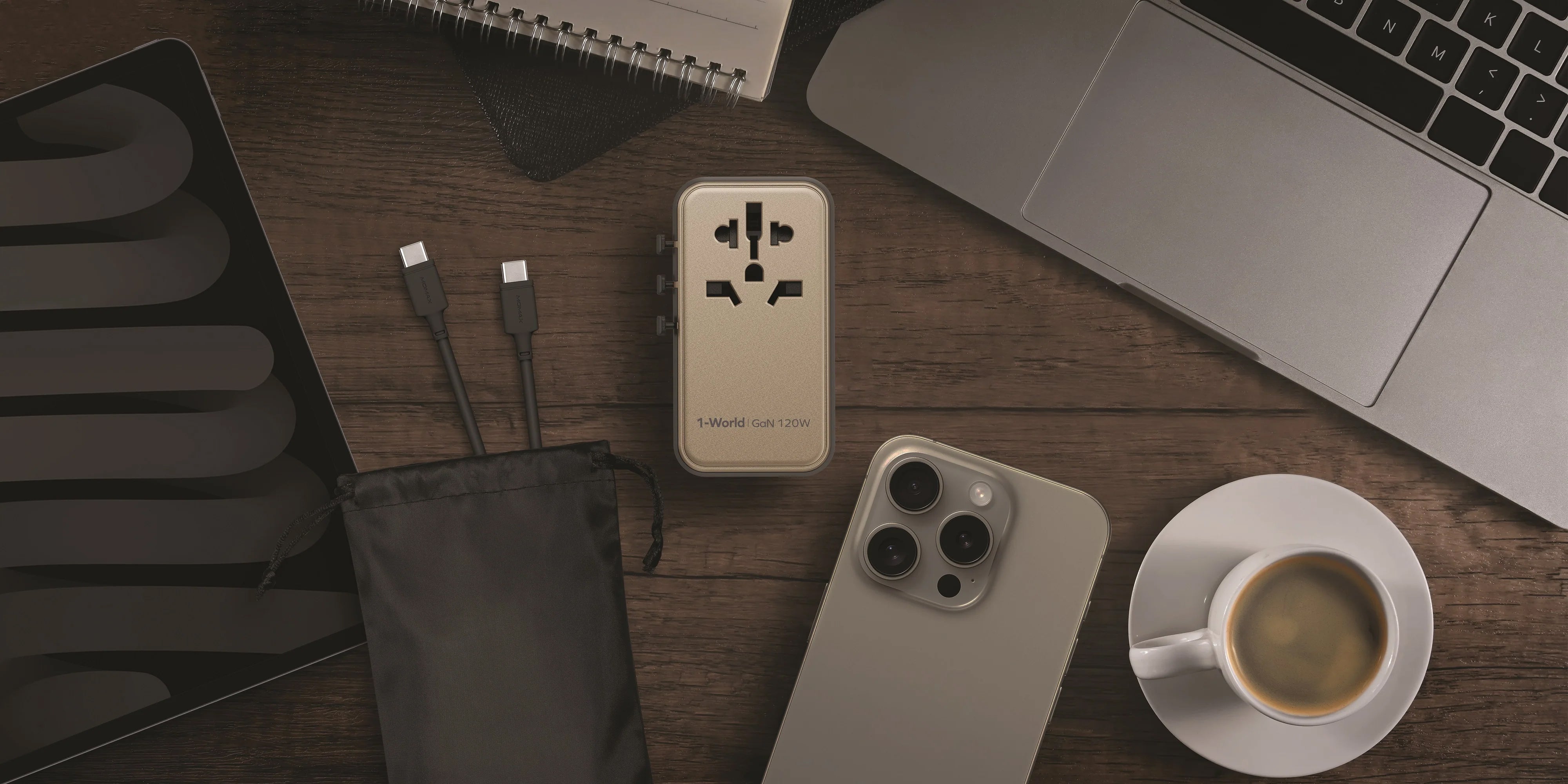 - 1-World Universal 4-Port Travel GaN Charger 120W