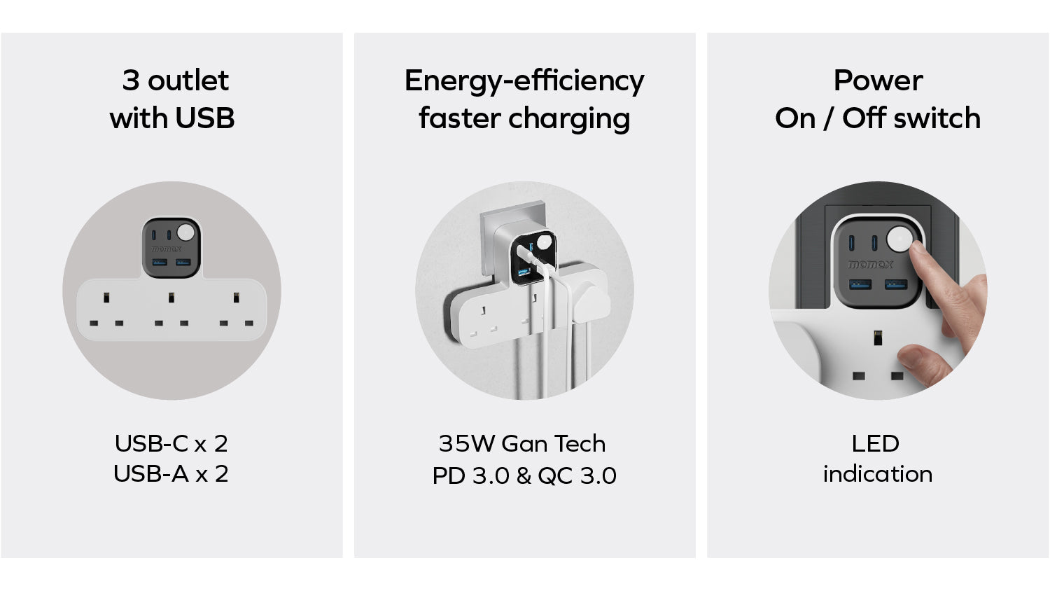 - 雙重快速充電技術:PD和QC 3.0,最大輸出功率35W。