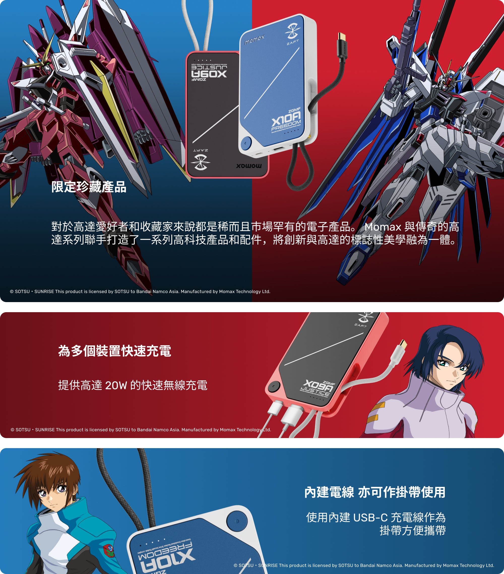 以機動戰士高達力量為主題的產品,不僅提供快速充電,還可以讓您任何時間同時為多個設備充電,為您帶來終極便利!