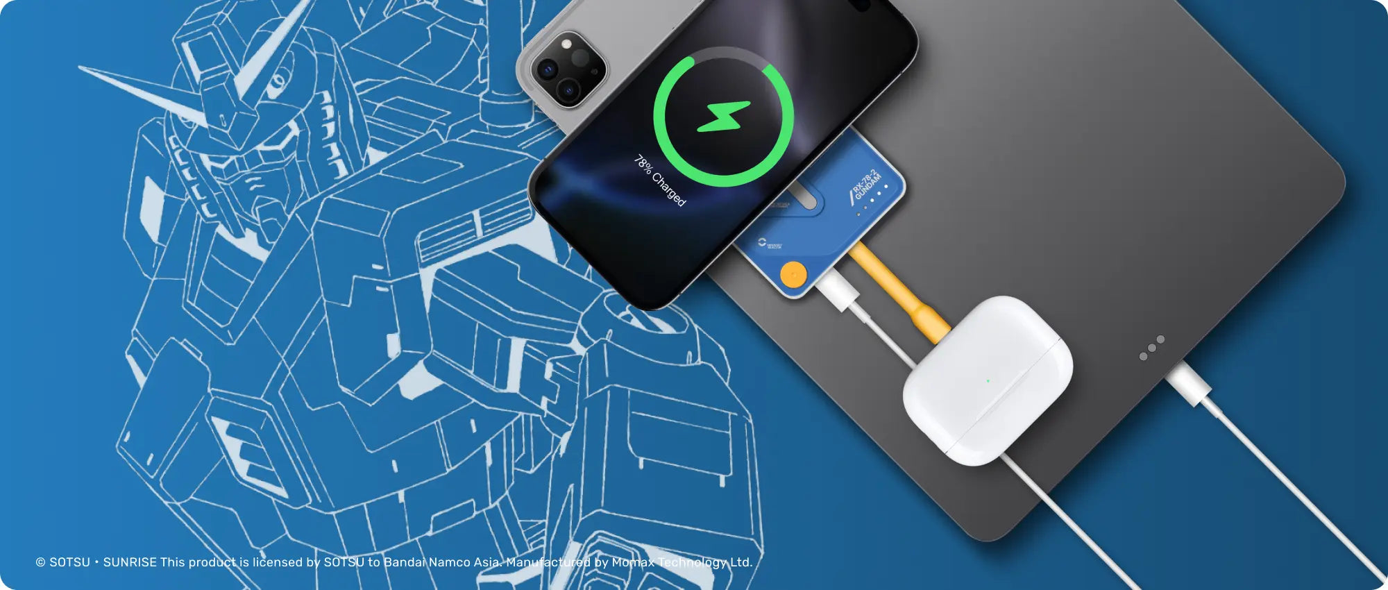 體驗一款以高達為靈感的多功能行動電源,它提供無線、快速和多裝置充電功能整合到一個裝置之中。