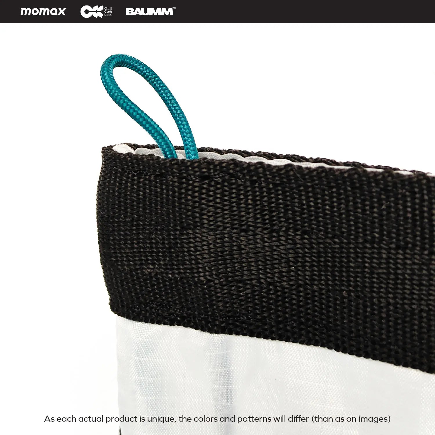 優質材料創新:手提袋由回收的滑翔傘布料製成,設計糅合了 防撕裂耐用性 同 精緻美感。透過循環利用高韌性航空紡織品,將高質素的材料,由堆填區轉移 及 提升增值,給予第二次生命。